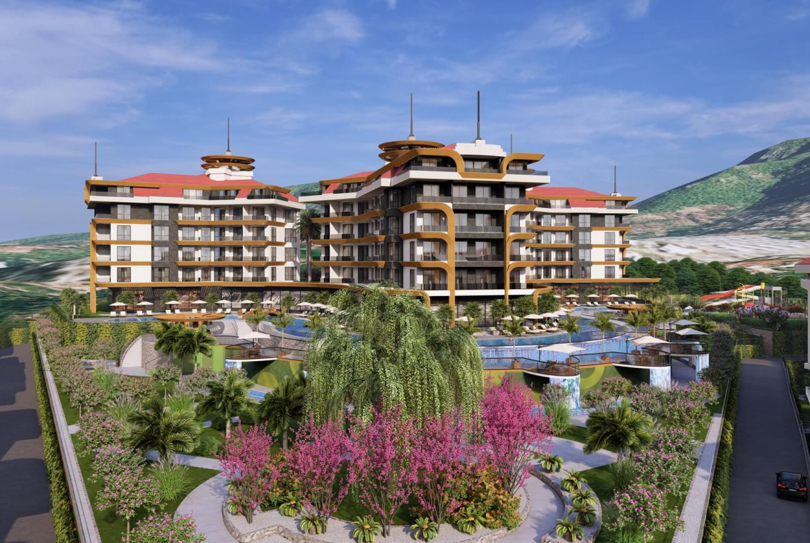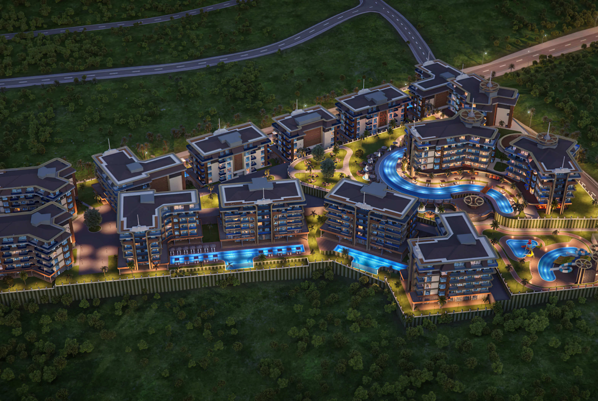The concept of the complex is based on low-rise horizontal architecture, which allows you to enjoy the atmosphere of the “country” right in the center of the city. Convenient location near the centers of Alanya and Mahmutlar, as well as proximity to the airports of Antalya and Gazipasa make it an ideal place to live and relax.