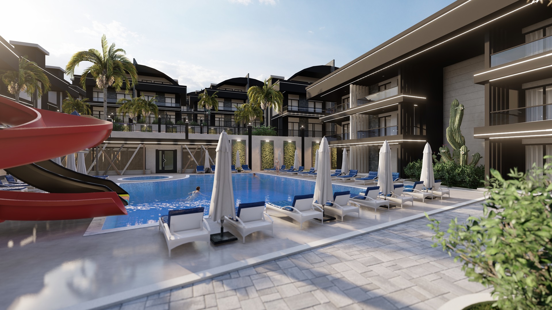 The project, located in the picturesque area of Turkler, on the Mediterranean coast, promises ideal conditions for a comfortable and peaceful life. This quiet corner of Alanya with magnificent nature and developed infrastructure is a real pearl of the Mediterranean. The Turkler area is becoming increasingly popular among domestic and foreign investors, as along with luxury hotels, residential complexes are actively developing here.