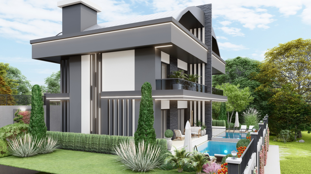 Modern three-storey villas with a total area of 210 m², including a private pool and a private elevator.