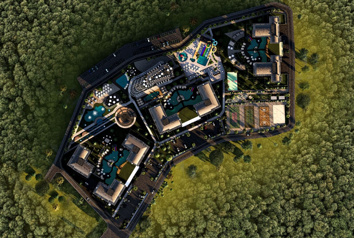 The complex will have 7 residential blocks and a 5-star hotel. Apartment owners will be able to use the entire infrastructure of the complex, including bars, restaurants and a spa center. The hotel will be open all year round, offering apartment owners meals at reduced prices and access to a professional gym.