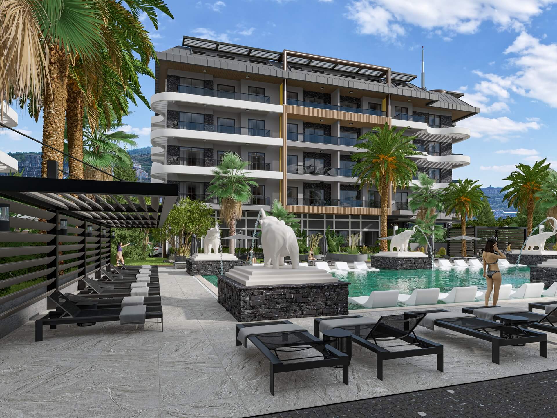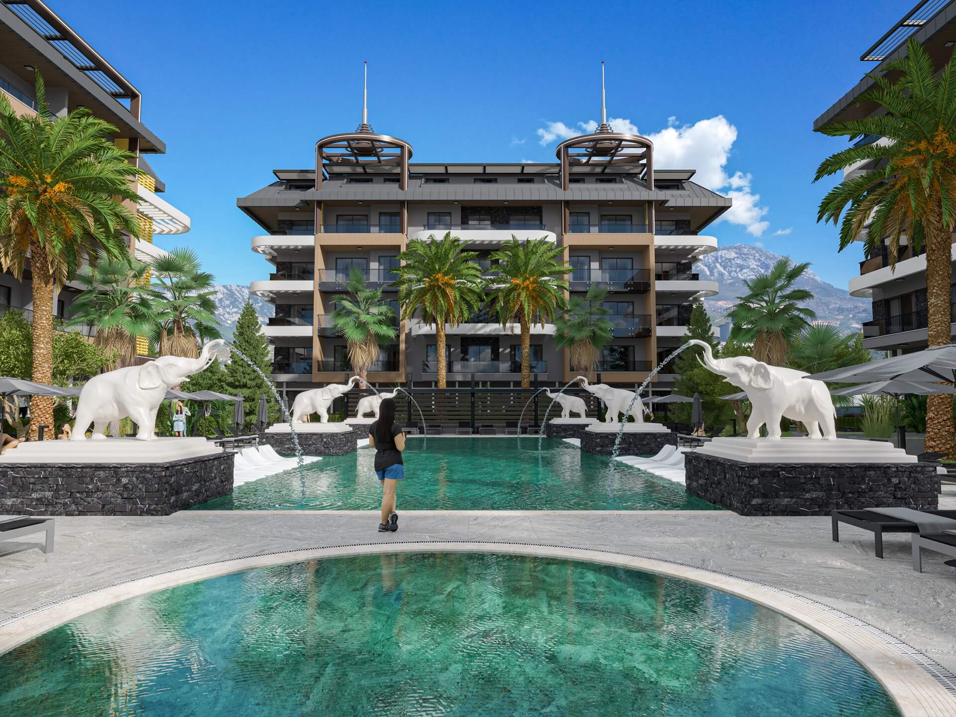 This is a unique residential residence located in the picturesque area of Kargicak, just 300 meters from the Mediterranean coast.