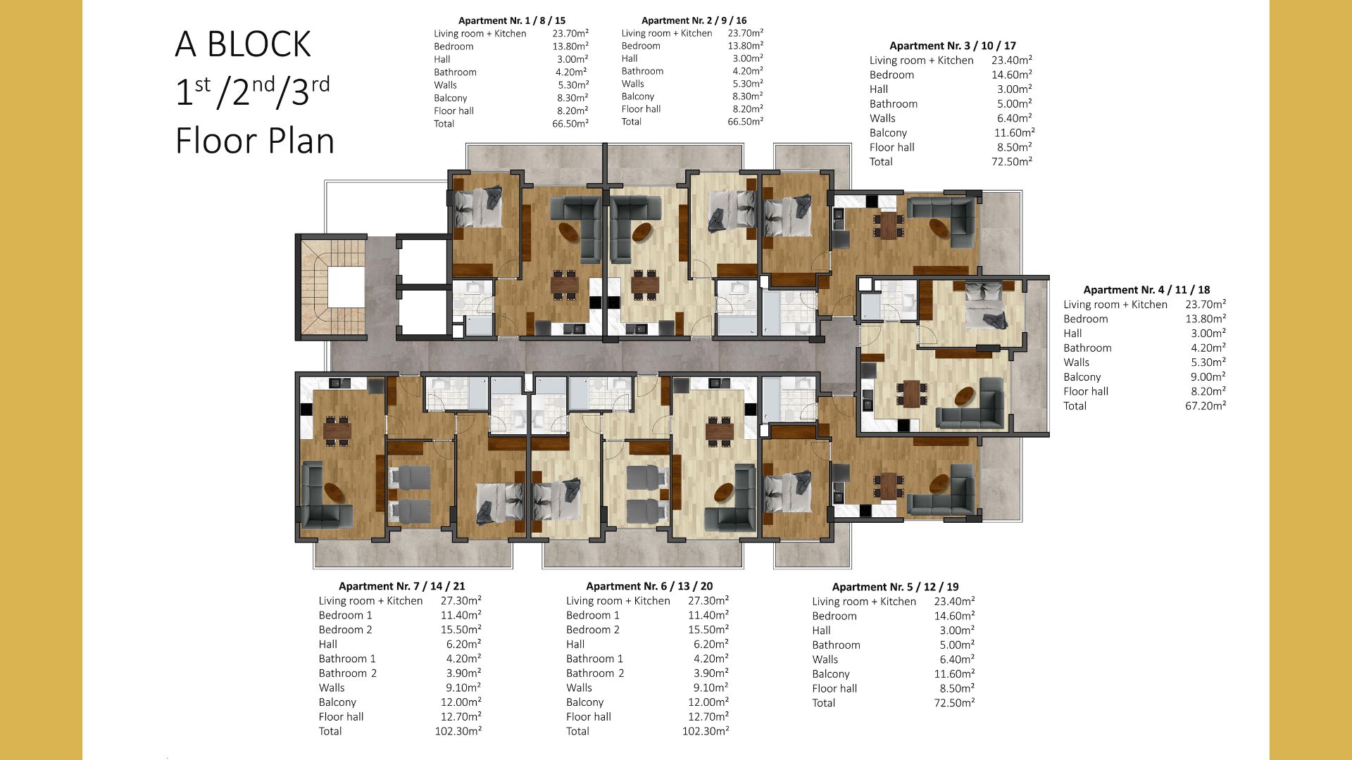 The project covers an area of 5620 m² and includes three 6-storey blocks, offering you a choice of different layouts. It is an ideal place for both living and relaxing, where you can enjoy the comfort and splendor of nature.