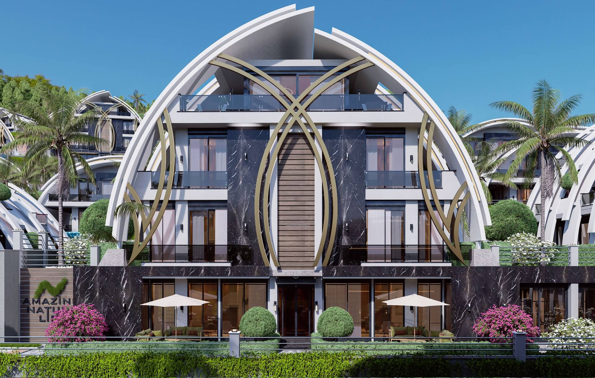 Проект занимает территорию площадью 32 акра и включает 166 жилых единиц, в числе которых 14 многоквартирных блоков и 42 эксклюзивные виллы.
