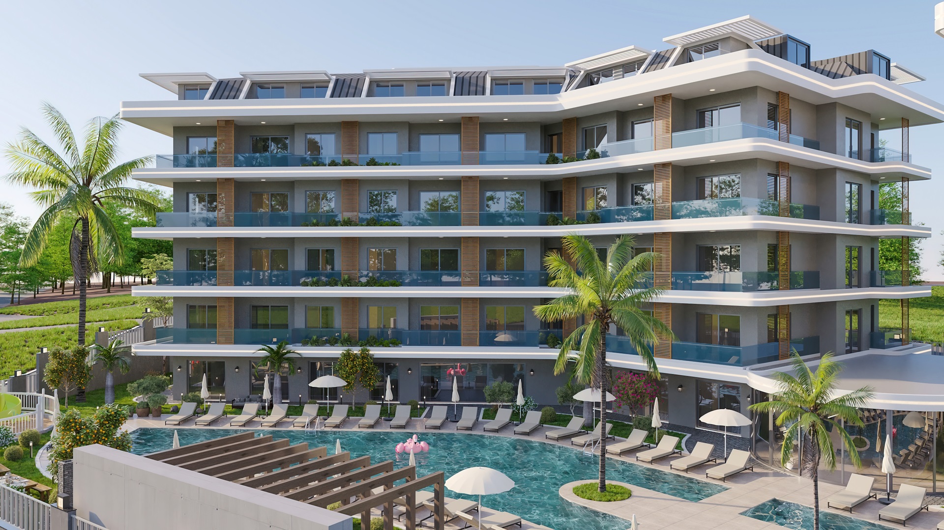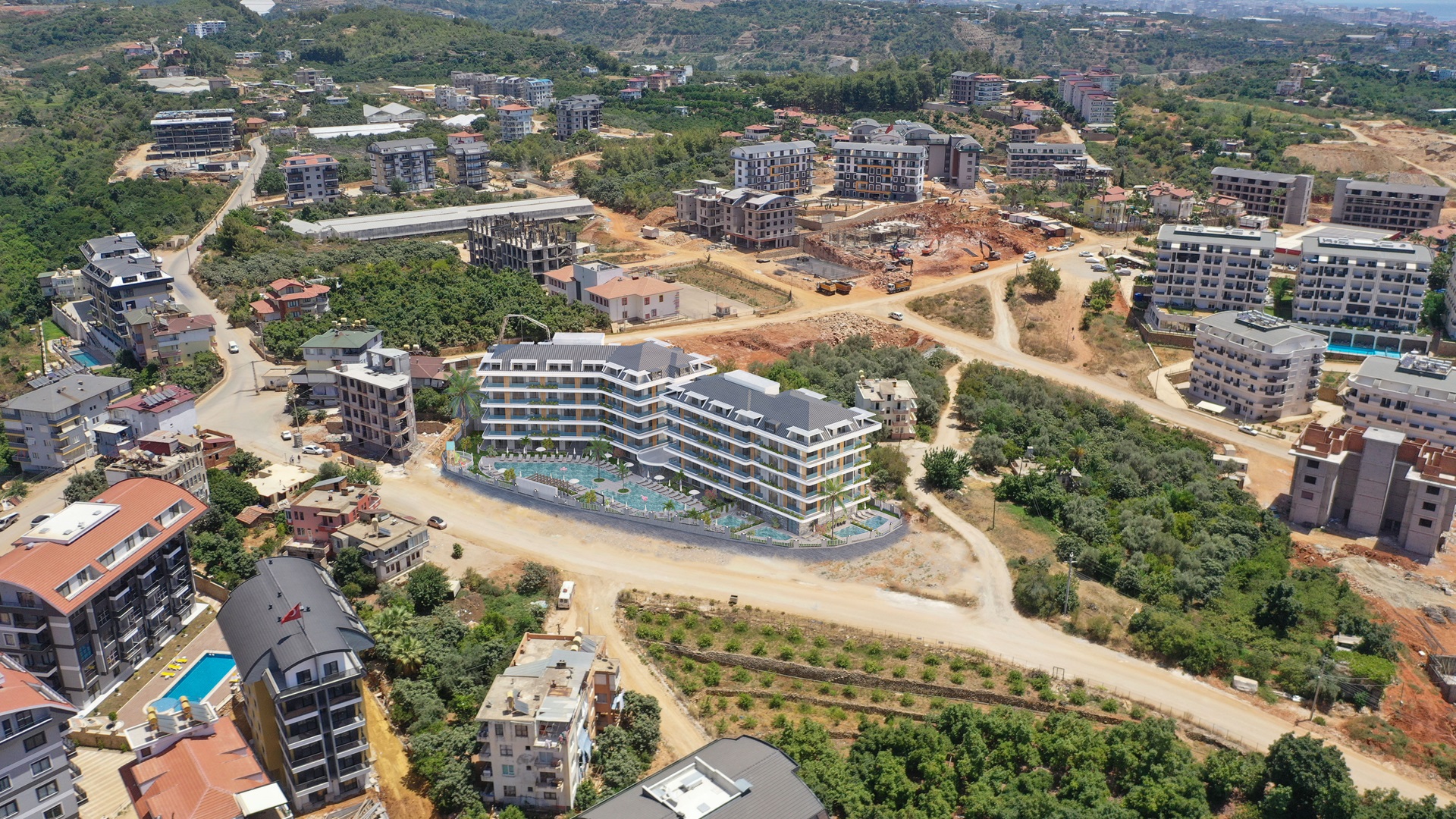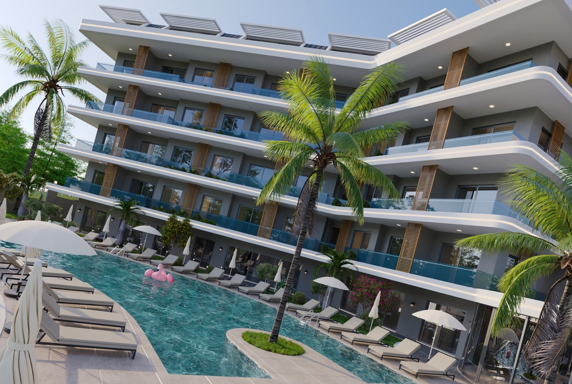 Мы рады представить вам уникальный проект, расположенный в престижном районе Оба. На территории площадью 3,880 м² строится два блока, каждый из которых будет состоять из 32 квартир разнообразных планировок. Вы можете выбрать стандартные 1+1 или уникальные квартиры с приватным бассейном и отдельным входом. Кроме того, есть возможность объединить несколько квартир и реализовать свою идеальную планировку. Практически из всех квартир открываются великолепные виды на Средиземное море и знаменитую крепость Кале.